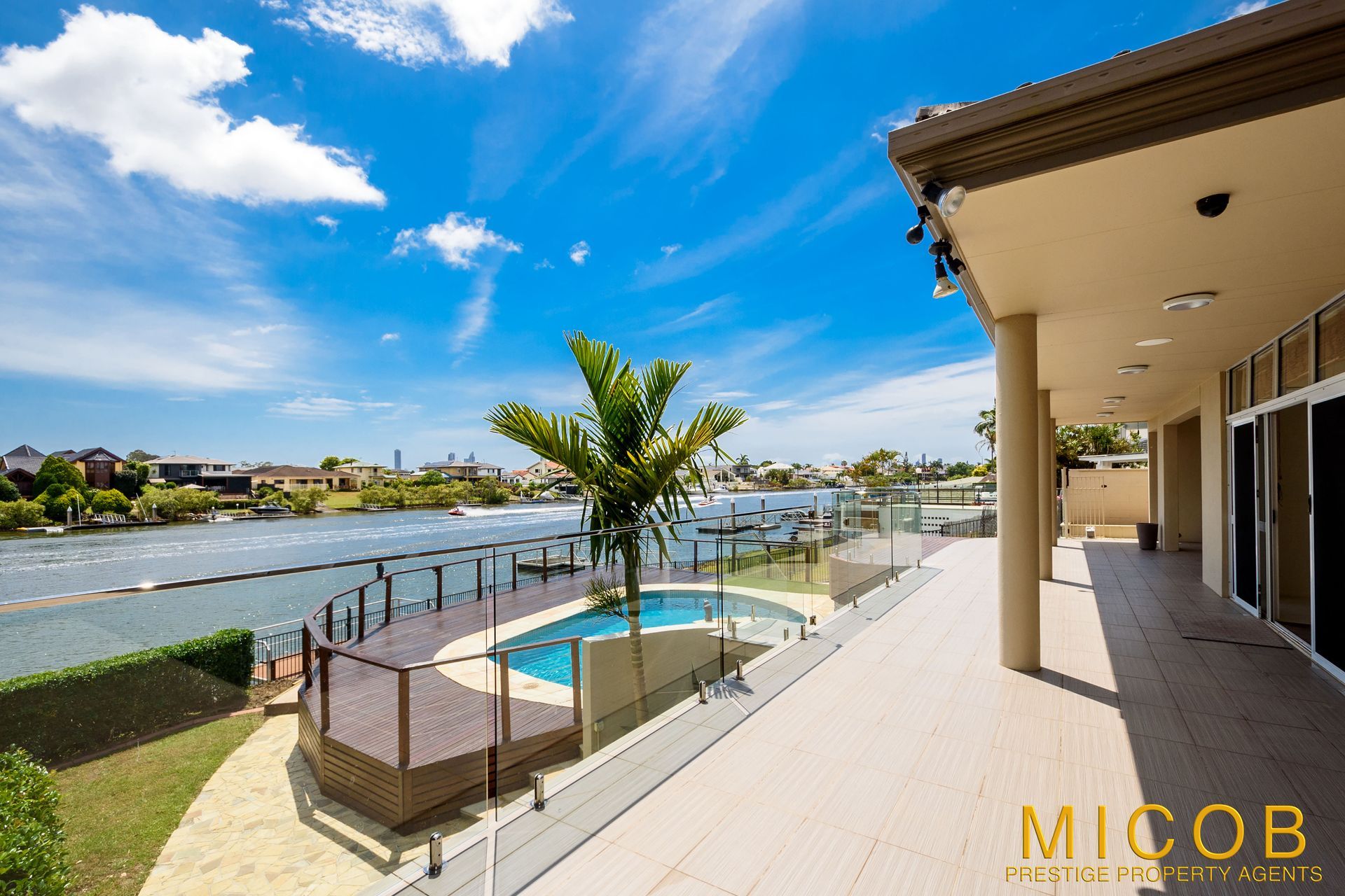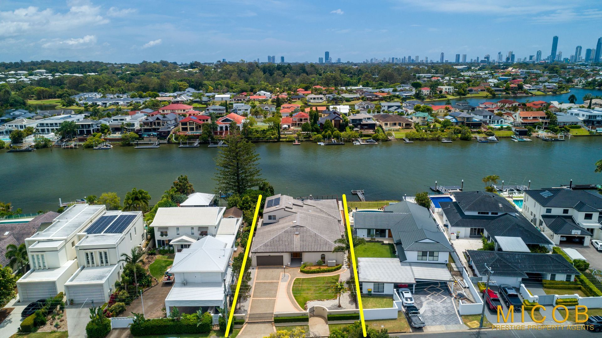 - Views across a wide section of Nerang River to Surfers Paradise skyline