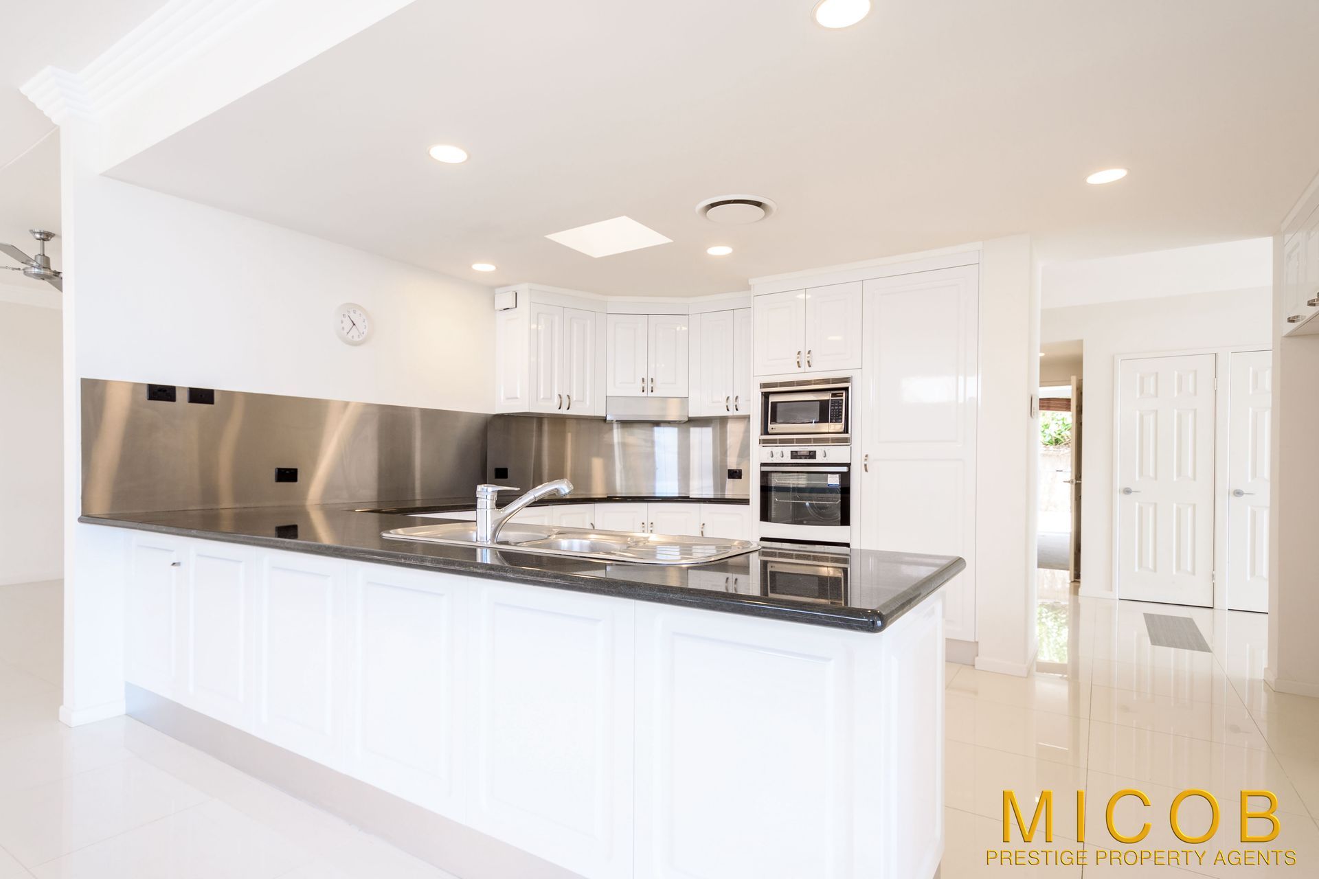 - Large, central kitchen with granite benches, walk-in pantry, stainless-steel splash-backs and appliances